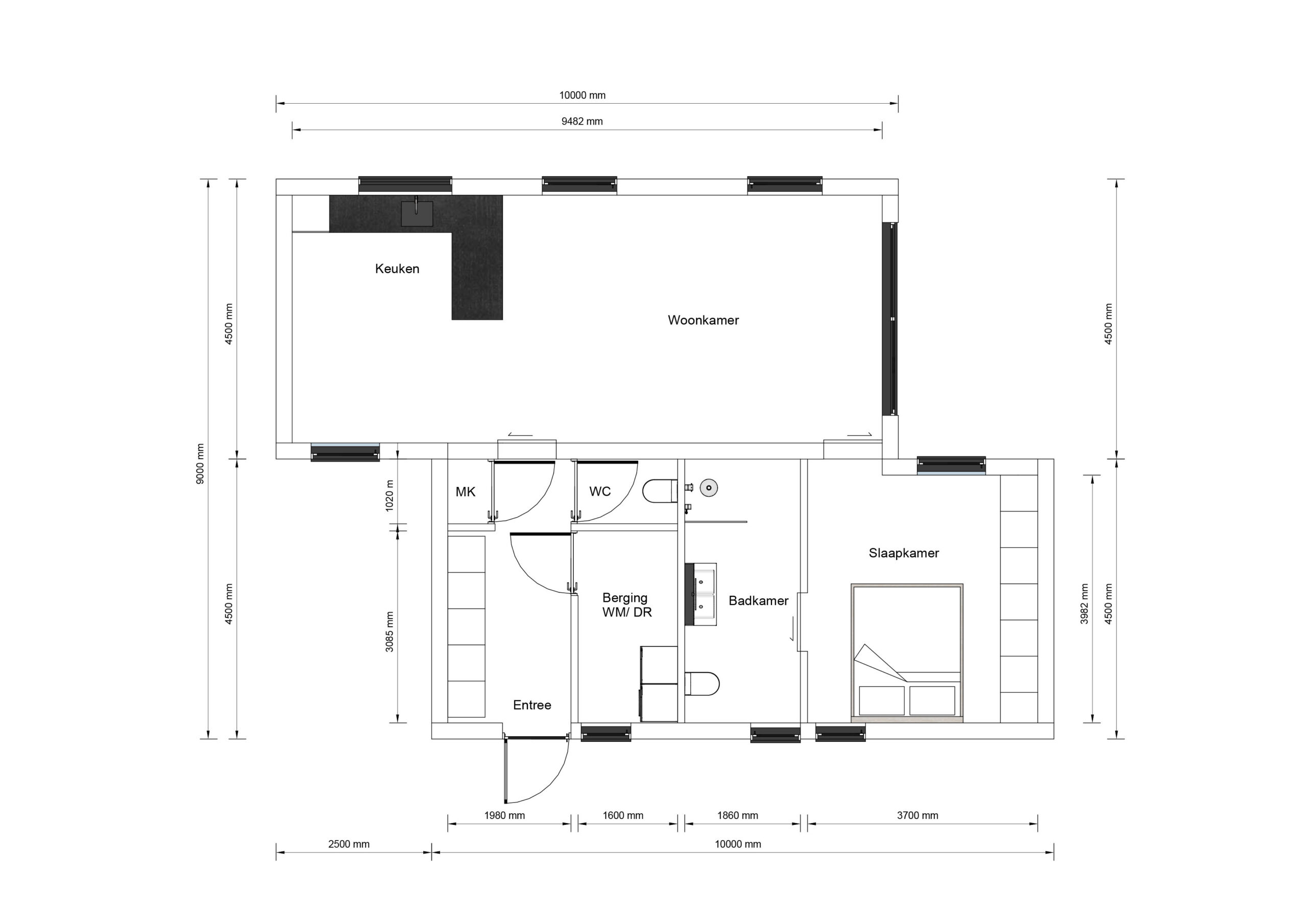 De Alvera is een hoogwaardige prefab woning die perfect is voor 1 of 2 personen, en kan ook dienen als mantelzorgwoning. Met een plat dak en een afmeting van 12 bij 9 meter, biedt deze woning een slimme indeling die optimaal gebruik maakt van de beschikbare ruimte. De woning beschikt over een comfortabele slaapkamer en praktische leefruimtes die zorgen voor een aangename woonervaring. Dankzij de grote ramen geniet de Alvera van een uitstekende lichtinval, wat bijdraagt aan een open en luchtige sfeer. Het ontwerp straalt moderniteit uit en is zorgvuldig samengesteld om zowel functionaliteit als esthetiek te combineren. De plattegrond van de Alvera is bijzonder door zijn doordachte indeling, waardoor elke vierkante meter efficiënt wordt benut, wat het een ideale keuze maakt voor wie waarde hecht aan kwaliteit en comfort.