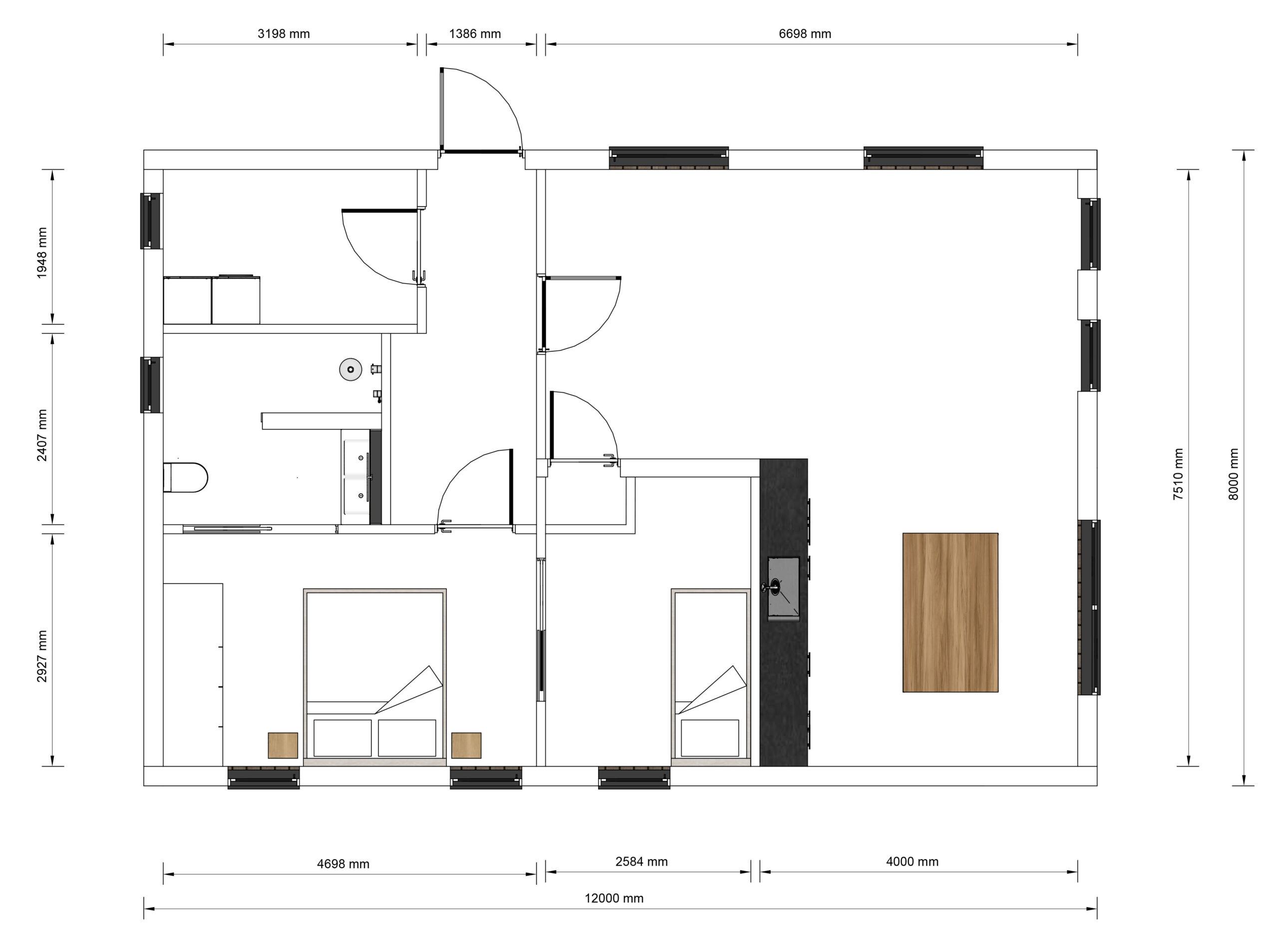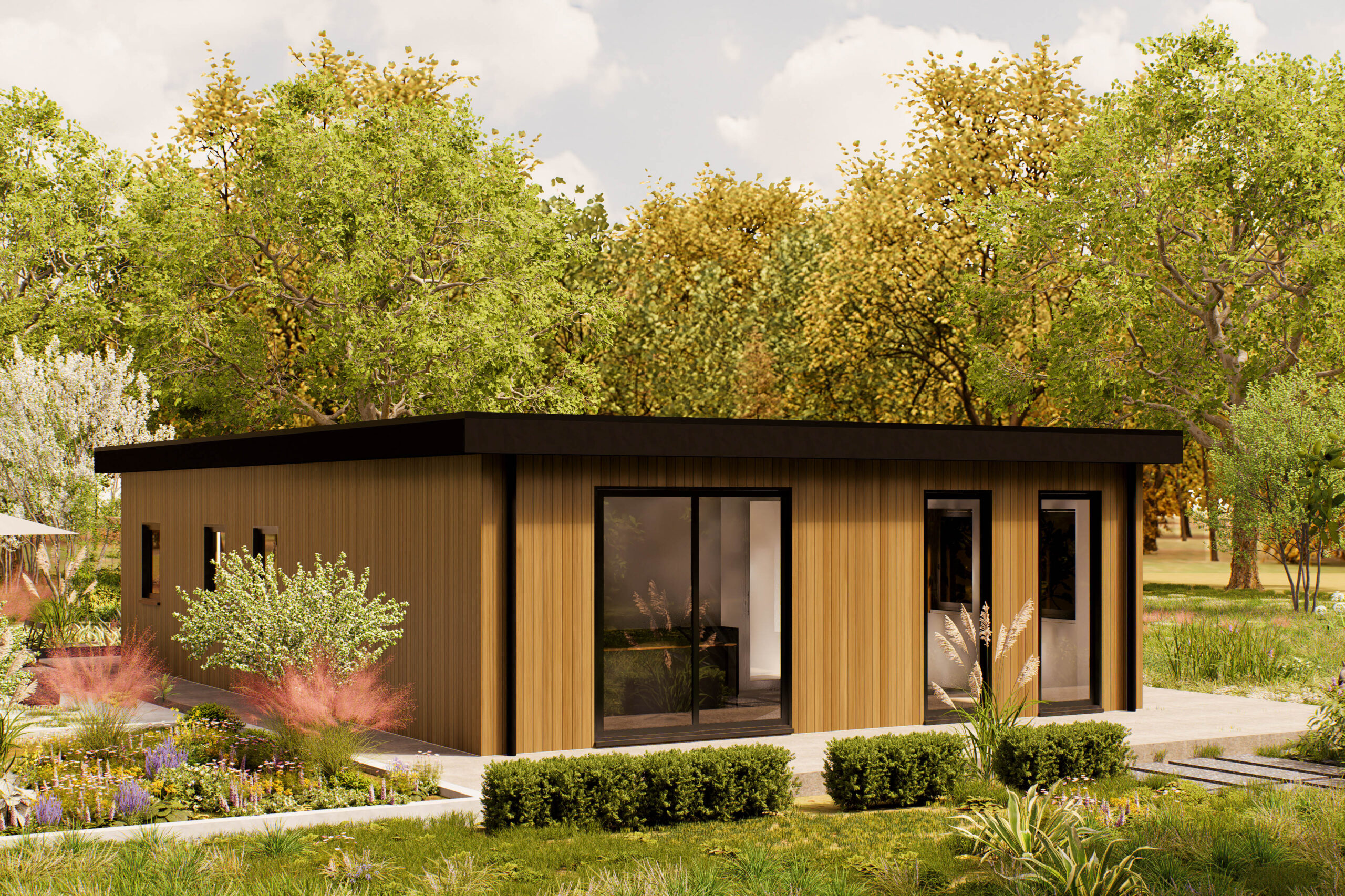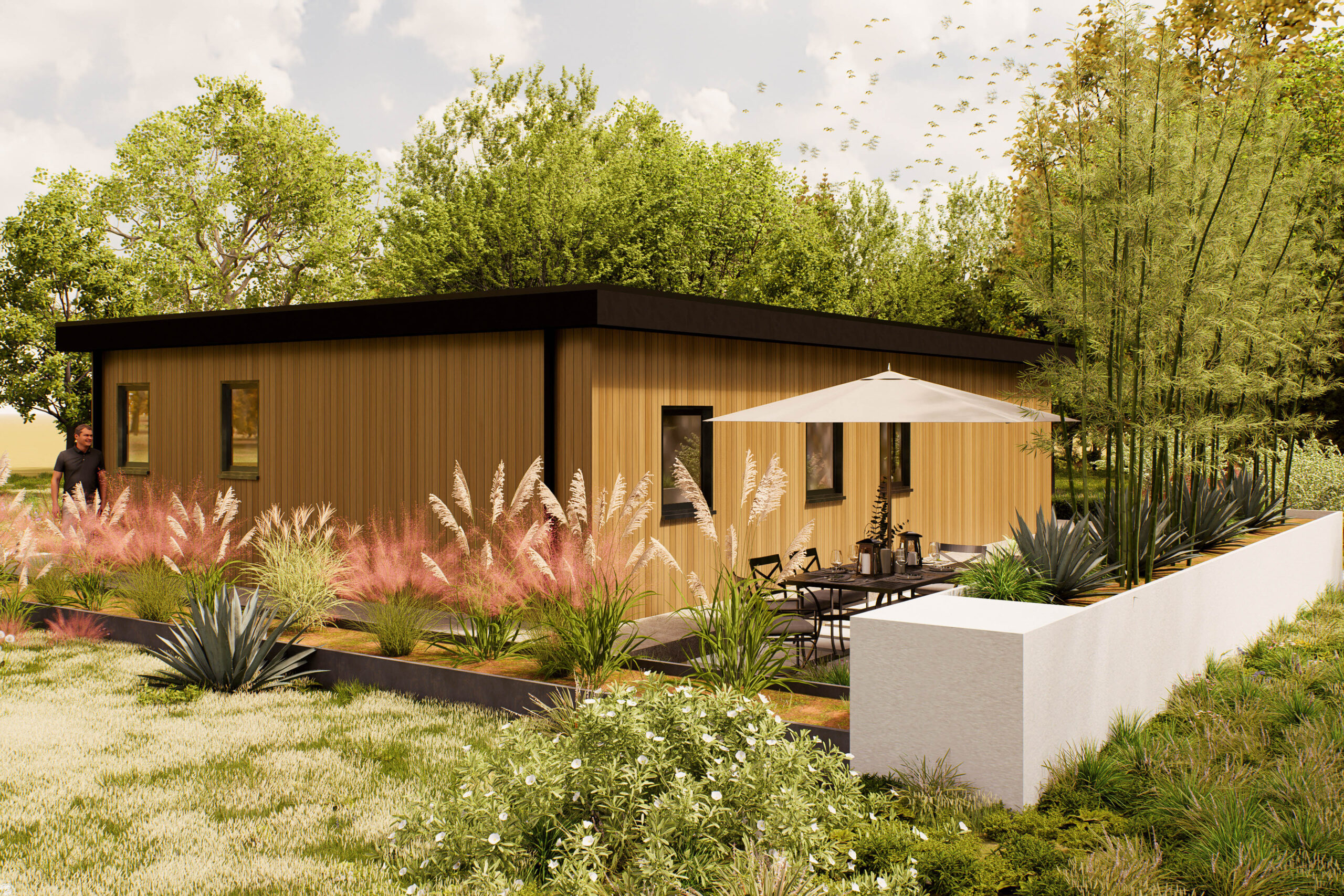 De Arvola is een stijlvolle woning van 100 m², ontworpen voor wie rust, ruimte en verbondenheid met de natuur belangrijk vindt. Het platte dak en de houten gevel geven het model een moderne en warme uitstraling, terwijl de grote ramen zorgen voor veel daglicht en een open sfeer. De woning ligt volledig gelijkvloers en is slim ingedeeld. Binnen biedt de Arvola twee slaapkamers, een royale woonkamer met open keuken, een los toilet, een berging en een veranda aan de voorzijde. De leefruimte is ruim en overzichtelijk, met directe toegang tot het terras en de tuin. De veranda vormt een fijne overgang tussen binnen en buiten, ideaal voor ontspanning of sociale momenten. De berging zorgt voor extra opbergruimte, zodat de woning netjes en functioneel blijft. De Arvola is geschikt voor diverse woonvormen: van zelfstandig wonen tot mantelzorg of werken aan huis. Dankzij de heldere plattegrond en het rustige ontwerp is dit model eenvoudig aan te passen aan persoonlijke voorkeuren, zoals vaste kastruimte, zonwering of extra voorzieningen. Een woning die rust en stijl combineert met praktische flexibiliteit — klaar voor nu én de toekomst.