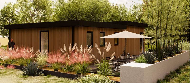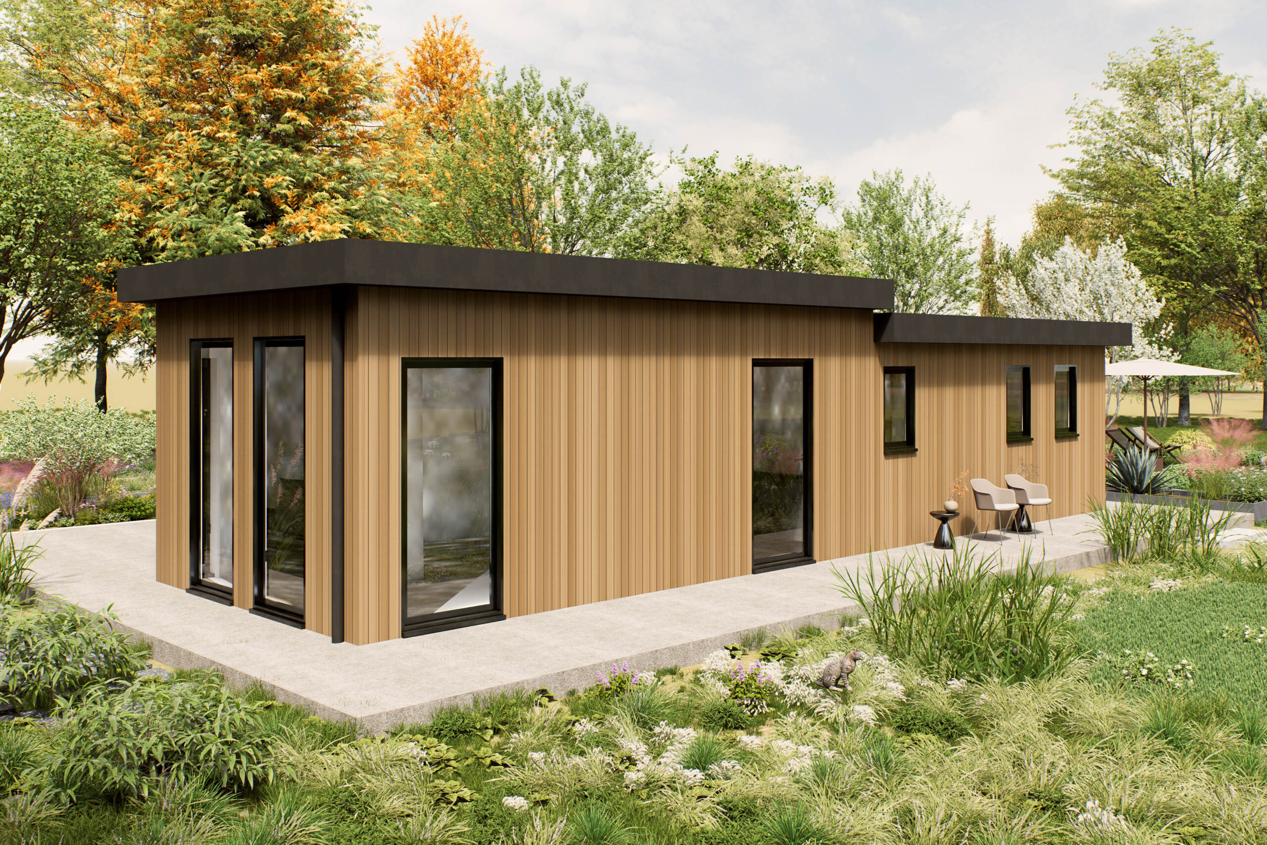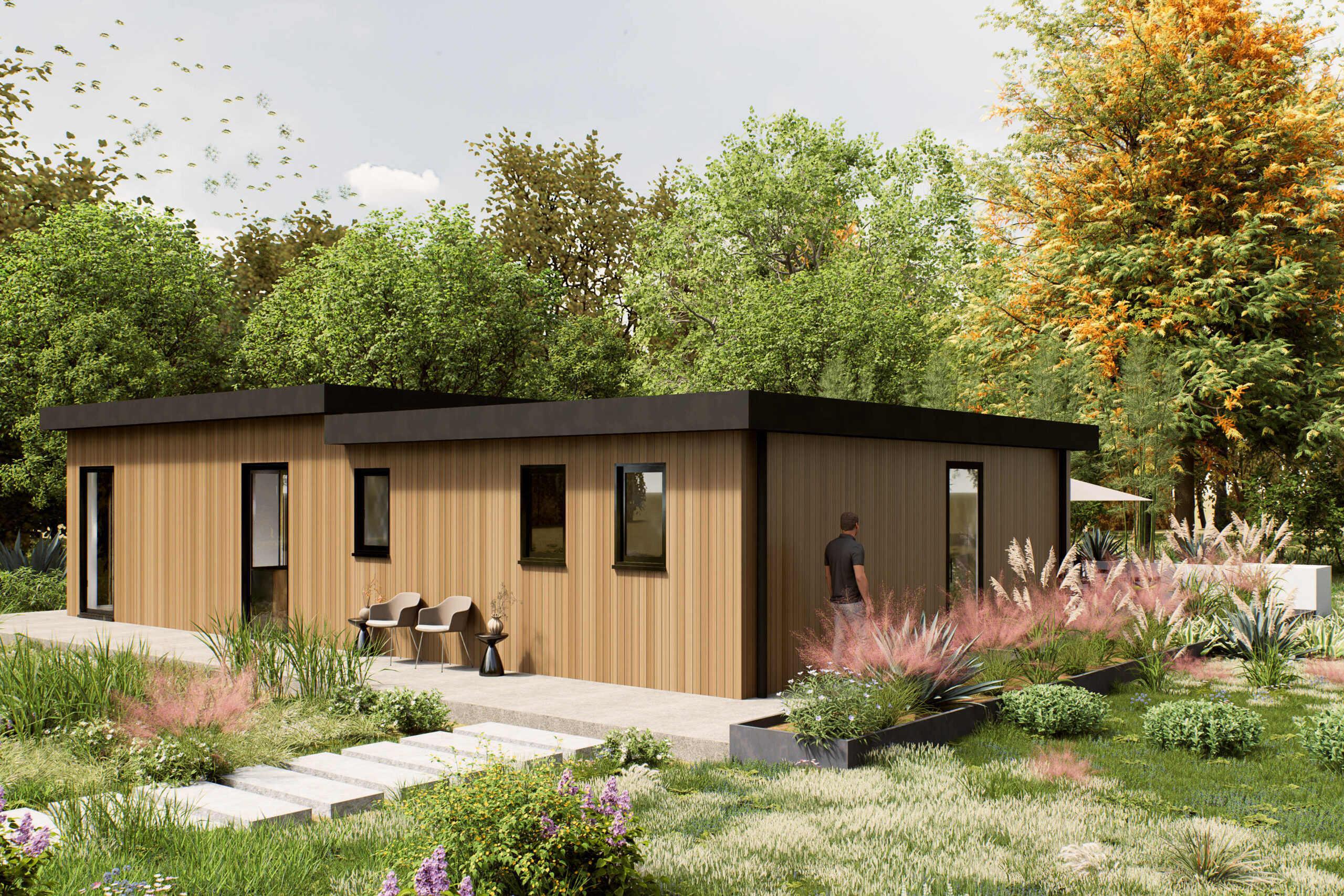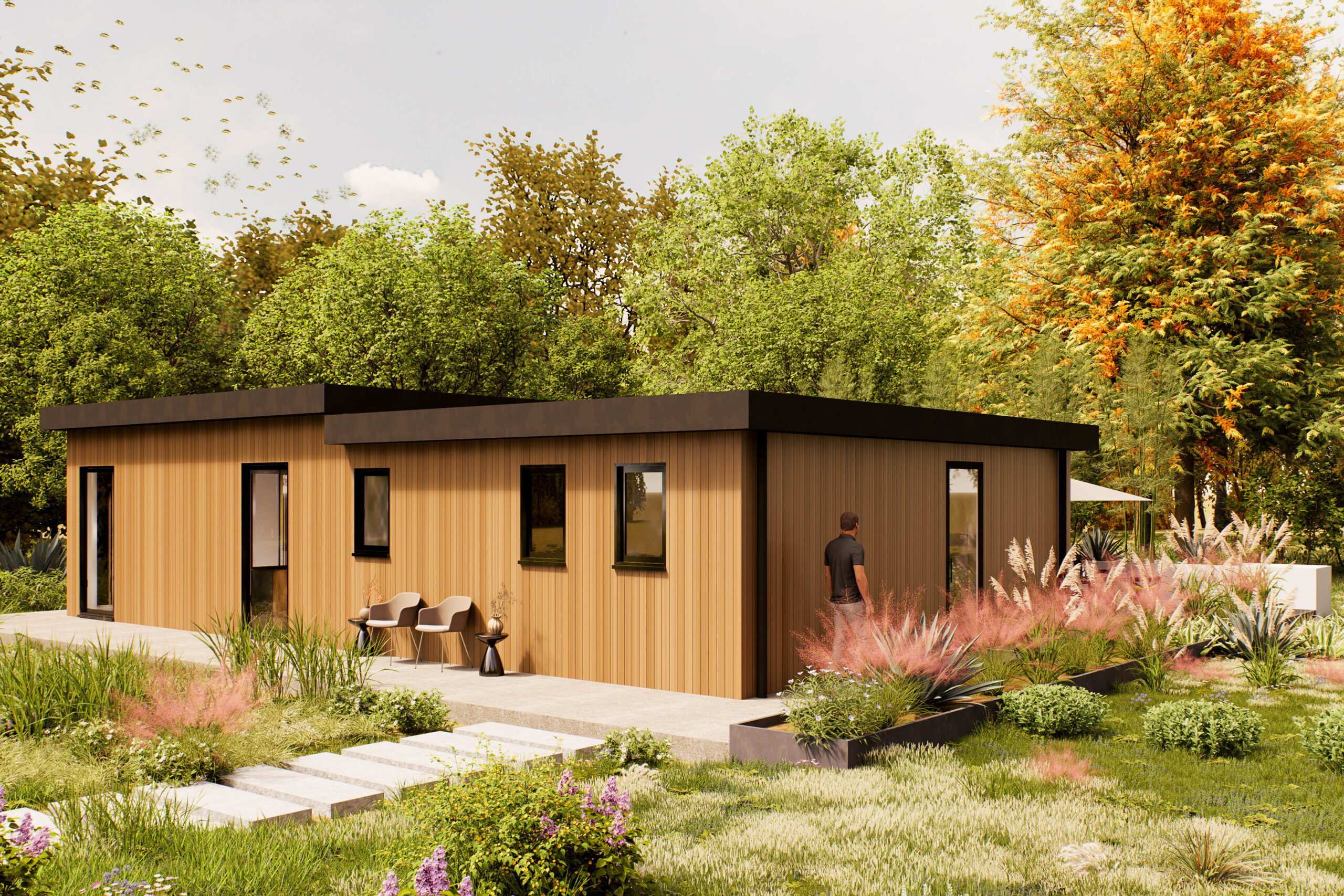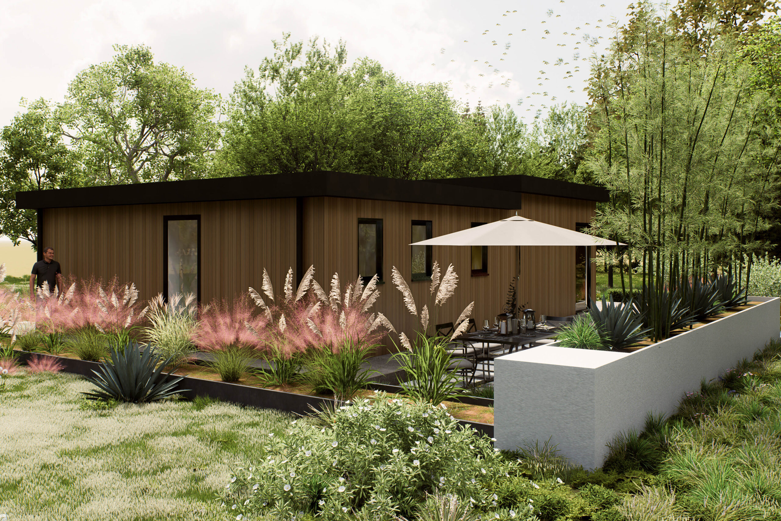De Brevia is een moderne woning van 80 m² met een rustige uitstraling en een slimme, compacte indeling. Het platte dak en de verticale houten gevel geven het ontwerp een eigentijdse en natuurlijke look, terwijl de grote ramen zorgen voor veel daglicht en een open sfeer. De woning ligt volledig gelijkvloers en is praktisch ingericht. Binnen biedt de Brevia twee slaapkamers, een royale woonkamer met open keuken, een los toilet, een berging en een veranda aan de voorzijde. De leefruimte is overzichtelijk en licht, met directe toegang tot het terras en de tuin. De veranda nodigt uit tot buiten zitten, en de berging zorgt voor extra opbergruimte, zodat de woning netjes blijft. De Brevia is geschikt voor uiteenlopende woonwensen: van zelfstandig wonen tot mantelzorg of werken aan huis. Dankzij de compacte plattegrond en het rustige ontwerp is dit model makkelijk aan te passen aan persoonlijke voorkeuren, zoals vaste kastruimte, zonwering of extra voorzieningen. Een woning die rust, stijl en efficiëntie combineert — ideaal voor wie comfortabel wil wonen op een overzichtelijke manier.