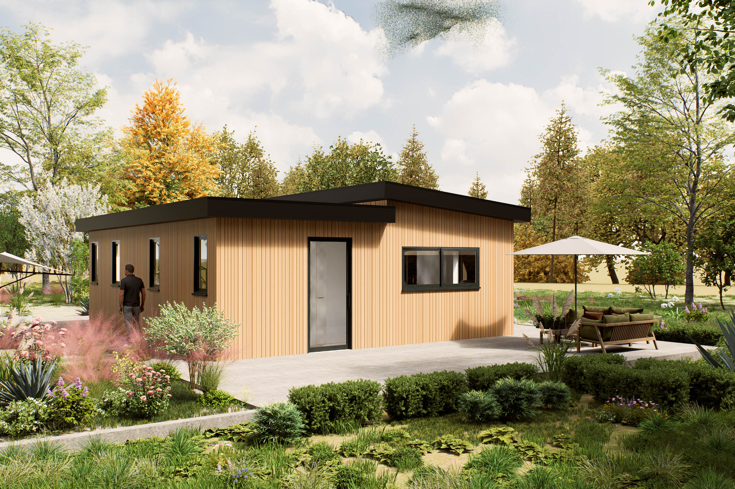 De Brilena is een hoogwaardige prefab woning die perfect is voor 1 of 2 personen, of als mantelzorgwoning. Met een slim ontworpen indeling van 72 m², biedt deze woning een comfortabele slaapkamer en praktische leefruimtes. Het lessenaarsdak geeft de woning een moderne uitstraling en zorgt voor een optimale lichtinval, wat bijdraagt aan een aangename sfeer. De afmetingen van 8 bij 9 meter maken het mogelijk om de ruimte efficiënt te benutten, zonder in te boeten op comfort. De Brilena is ontworpen met aandacht voor detail, waardoor de plattegrond bijzonder functioneel is. Dit model combineert esthetiek met praktische oplossingen, waardoor het een ideale keuze is voor wie waarde hecht aan kwaliteit en comfort.