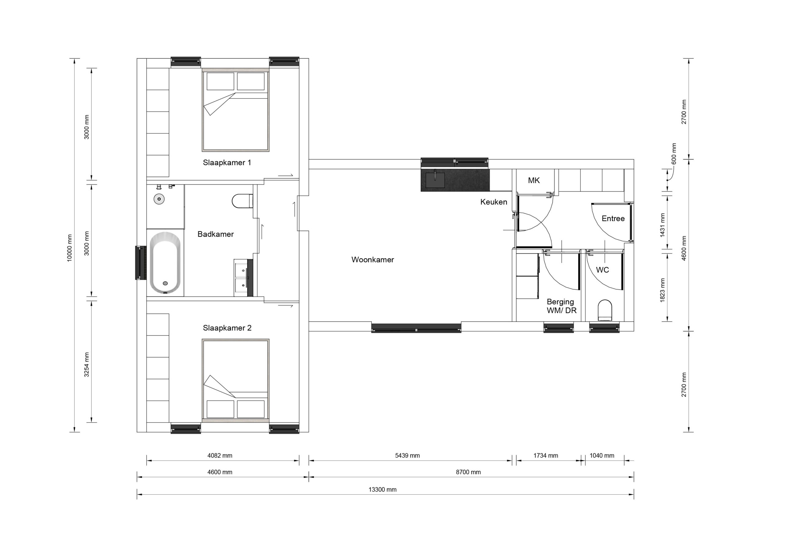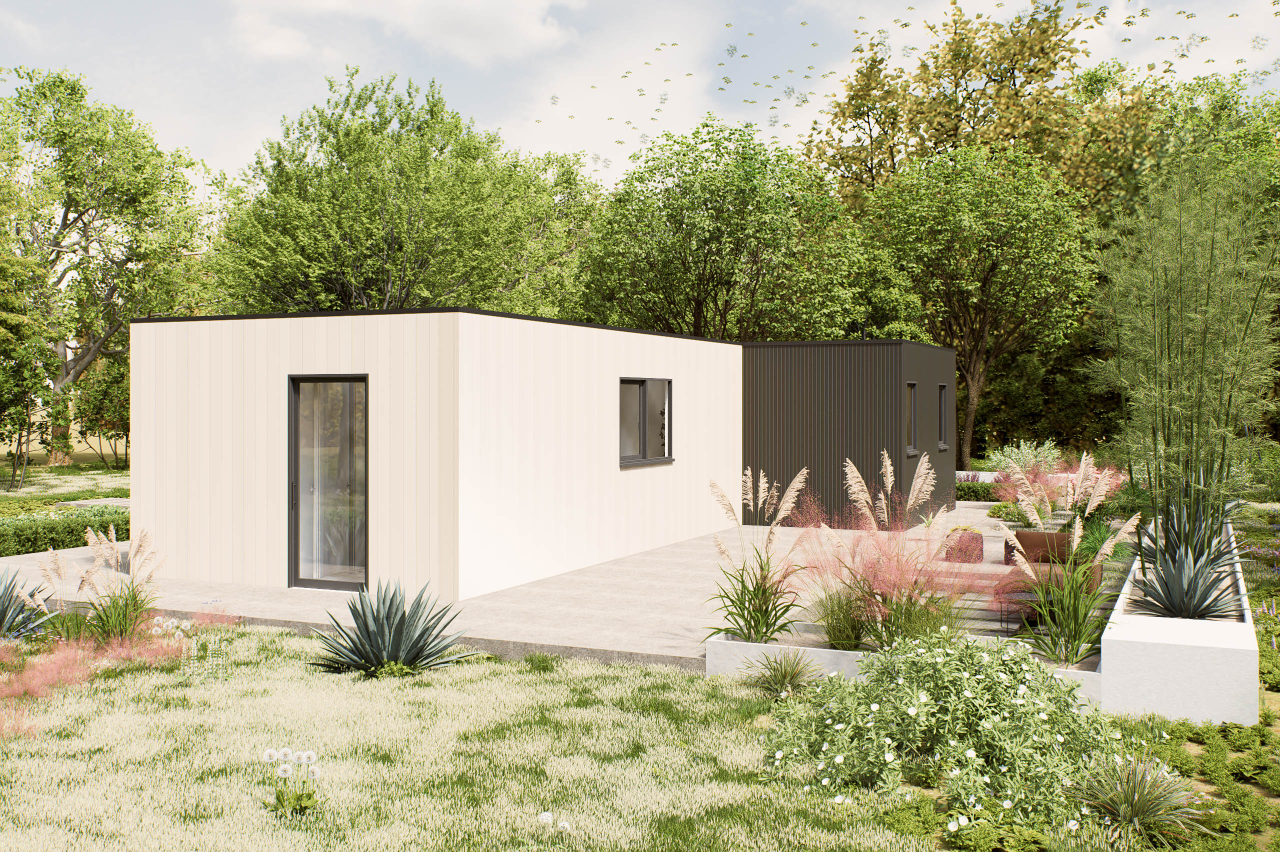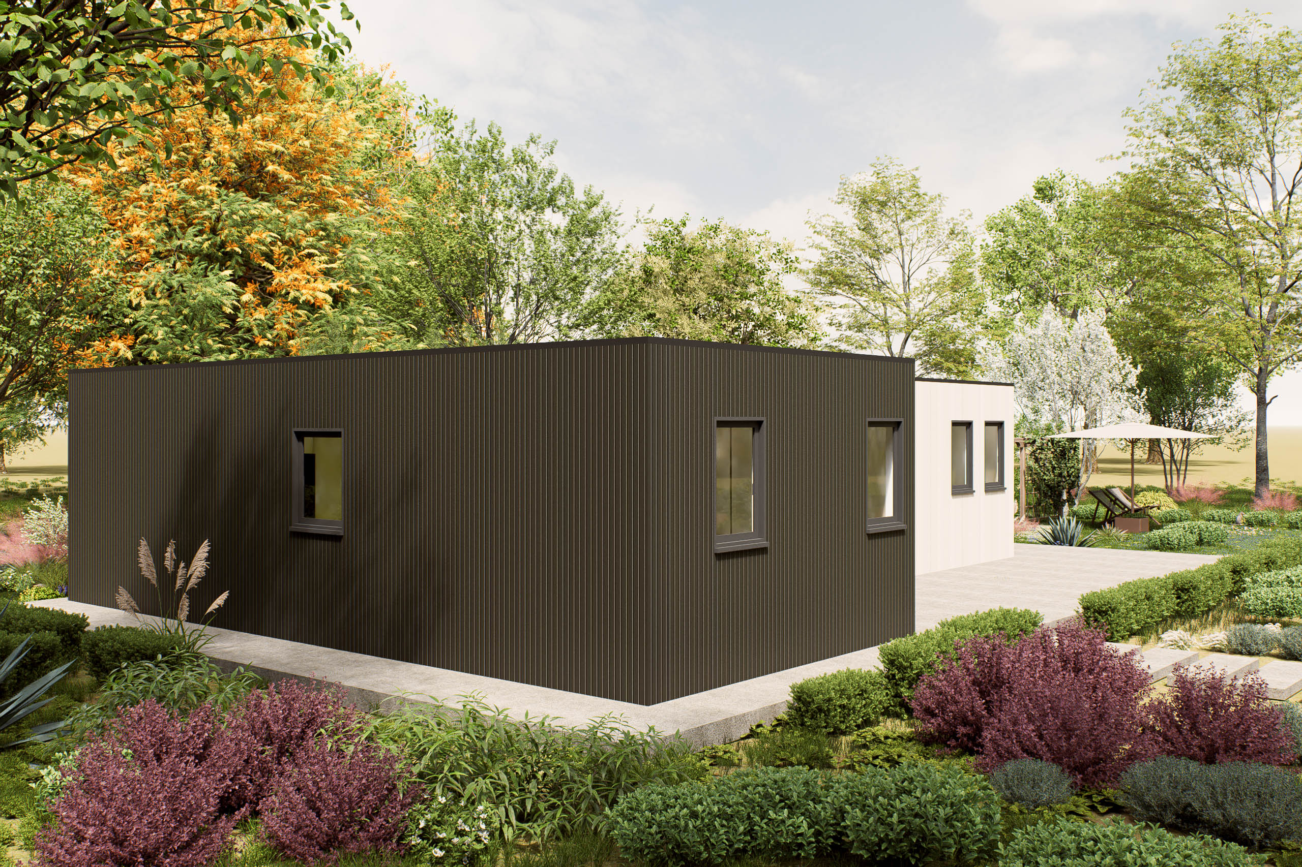De Calera is een hoogwaardige prefab woning die perfect is voor één of twee personen, of als mantelzorgwoning. Met een plat dak en een slimme indeling van 10 bij 13,3 meter, biedt deze woning een optimale benutting van de beschikbare ruimte. De woning beschikt over twee comfortabele slaapkamers en is ontworpen met een focus op lichtinval, wat zorgt voor een aangename en uitnodigende sfeer. De praktische leefruimtes zijn zorgvuldig ingericht om functionaliteit en comfort te combineren, waardoor de Calera een ideale keuze is voor wie waarde hecht aan kwaliteit en stijl. Het moderne ontwerp van de woning straalt een eigentijdse elegantie uit, terwijl de plattegrond een unieke flow biedt die het dagelijks leven vergemakkelijkt.