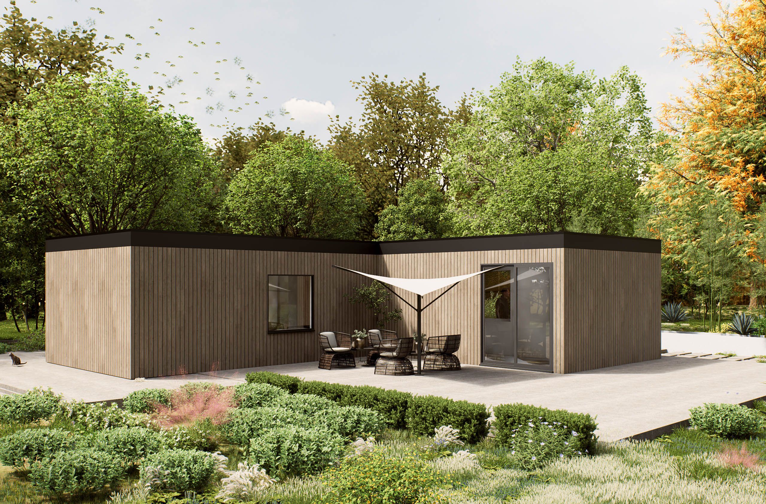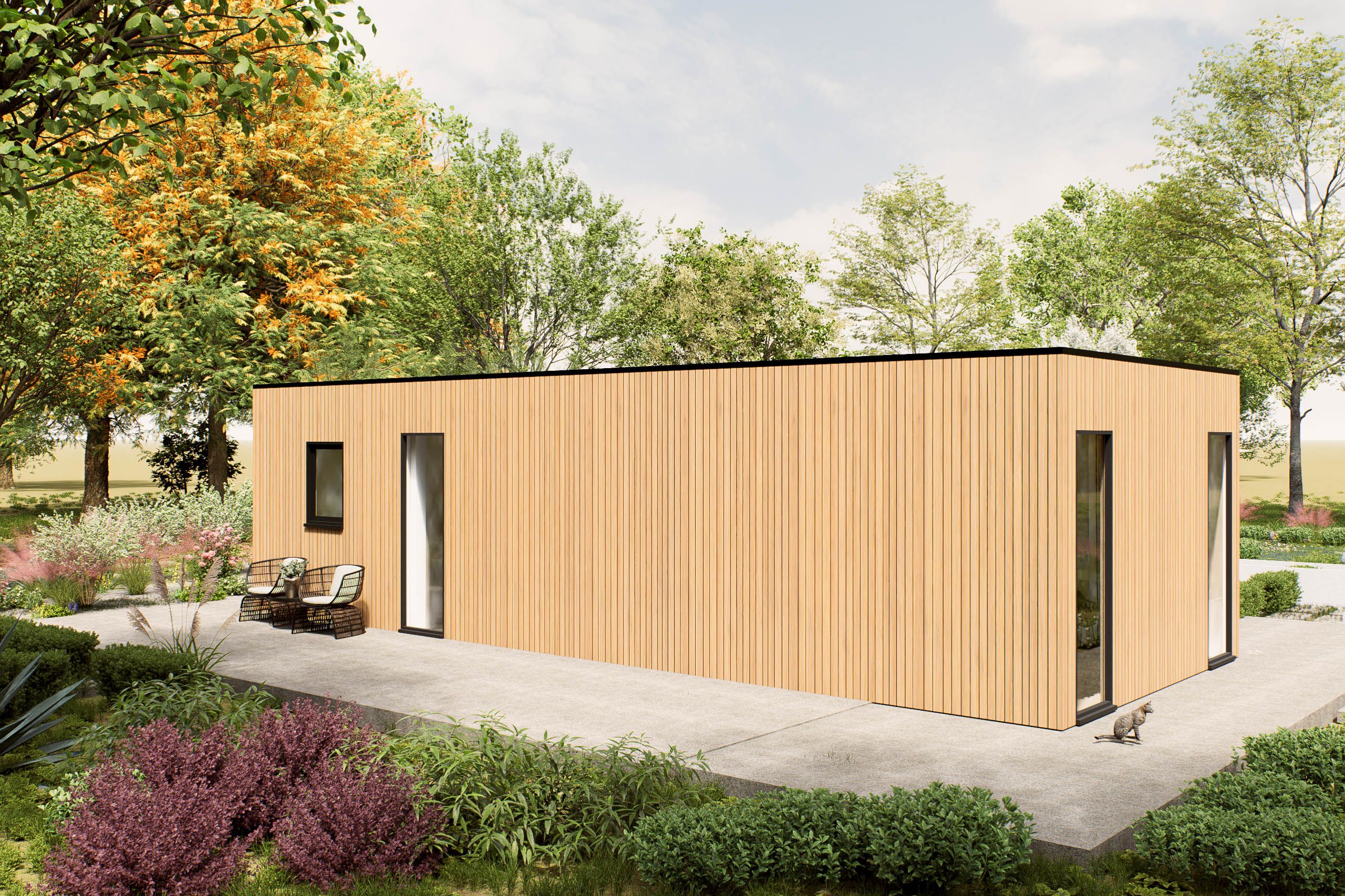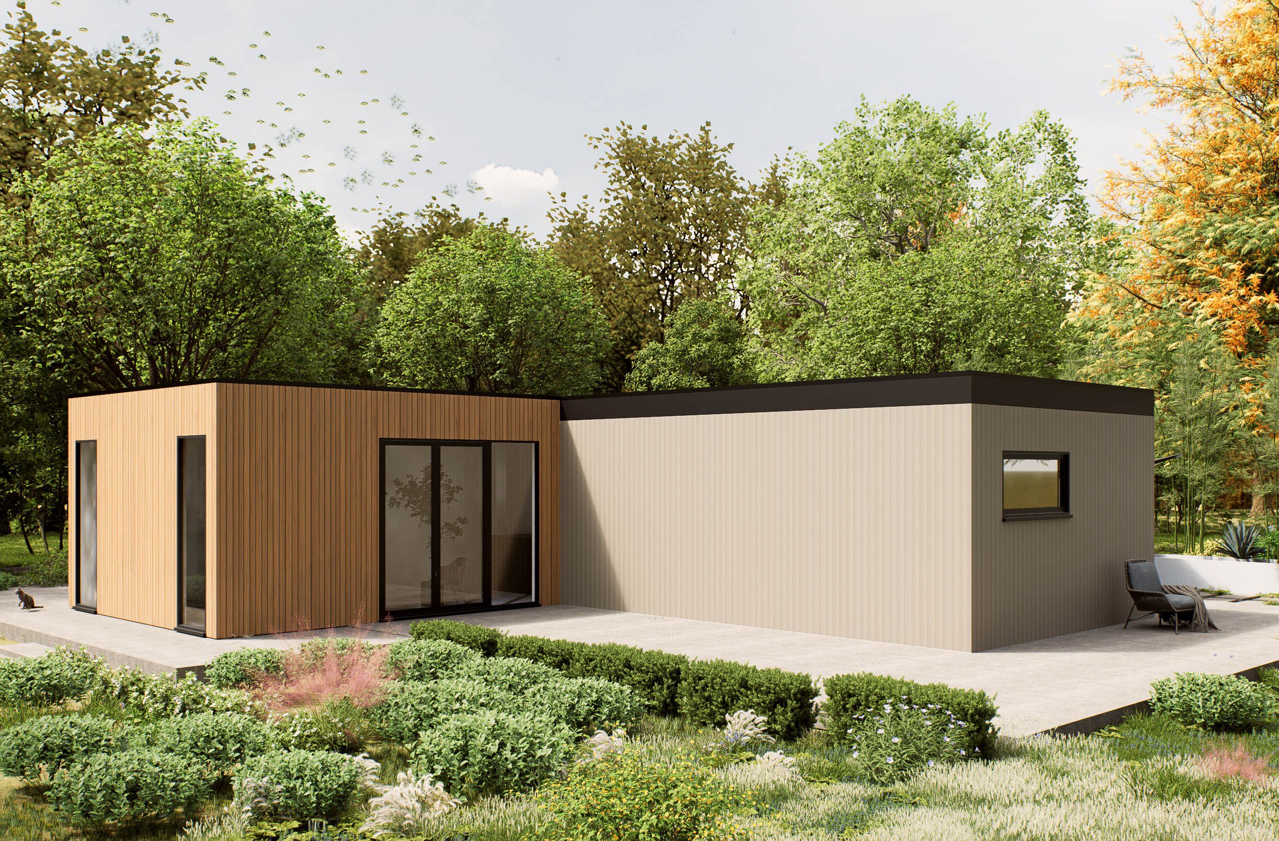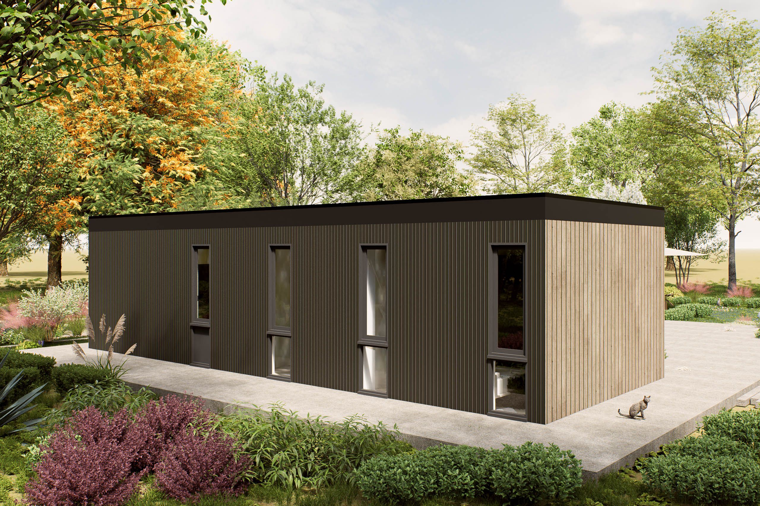 De Carviano is een hoogwaardige prefab woning die perfect is voor één of twee personen, en kan ook dienen als mantelzorgwoning. Met een versprongen dak en een slimme indeling biedt deze woning een optimale lichtinval en comfort. De afmetingen van 15 meter in lengte en 10 meter in breedte zorgen voor praktische leefruimtes die efficiënt zijn ingericht. Het ontwerp straalt moderniteit uit, met een focus op functionaliteit en esthetiek. De plattegrond is bijzonder door de doordachte indeling, die zorgt voor handige verbinding tussen de verschillende ruimtes. Dit maakt de Carviano een ideale keuze voor wie waarde hecht aan zowel kwaliteit als een stijlvolle uitstraling.