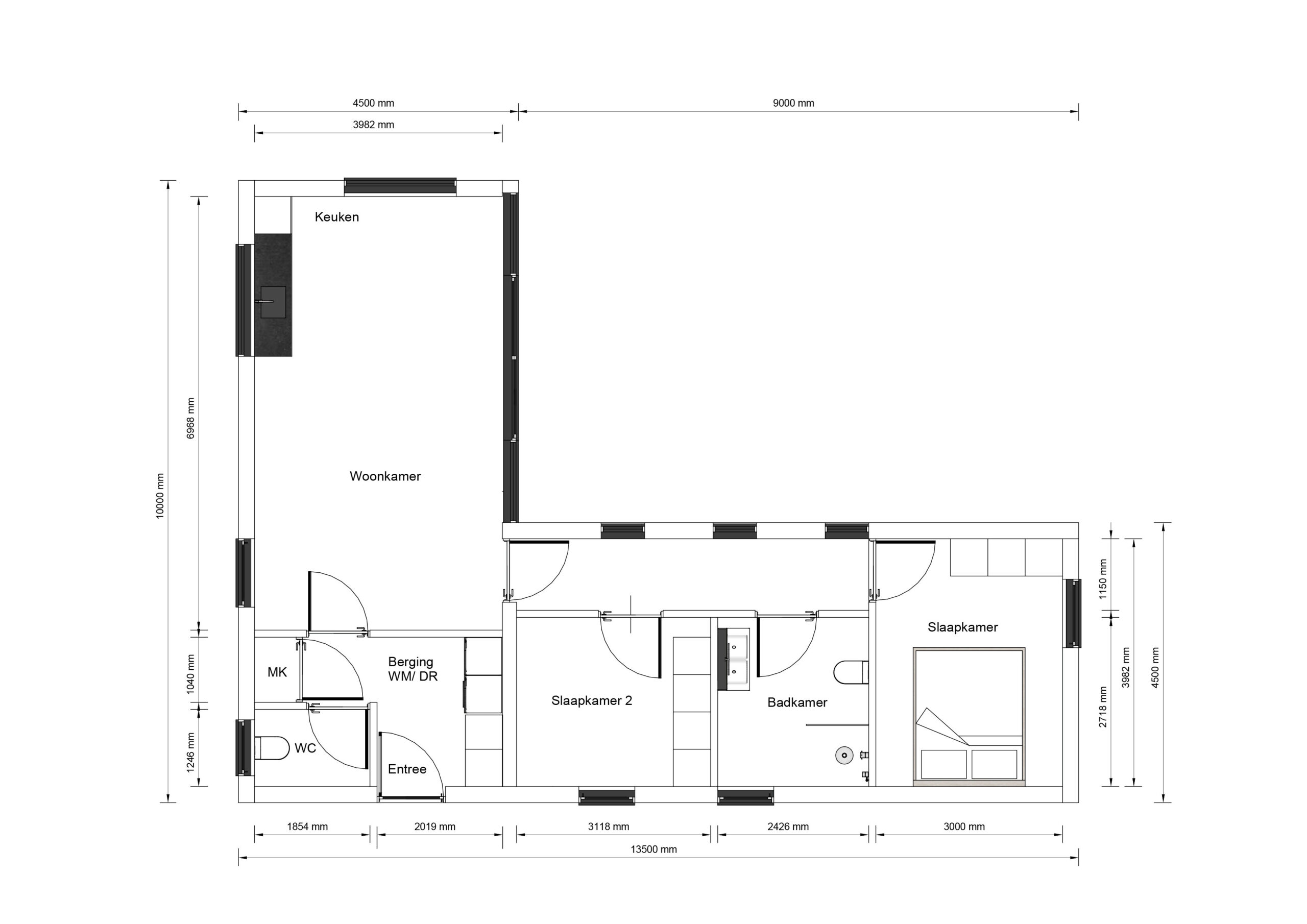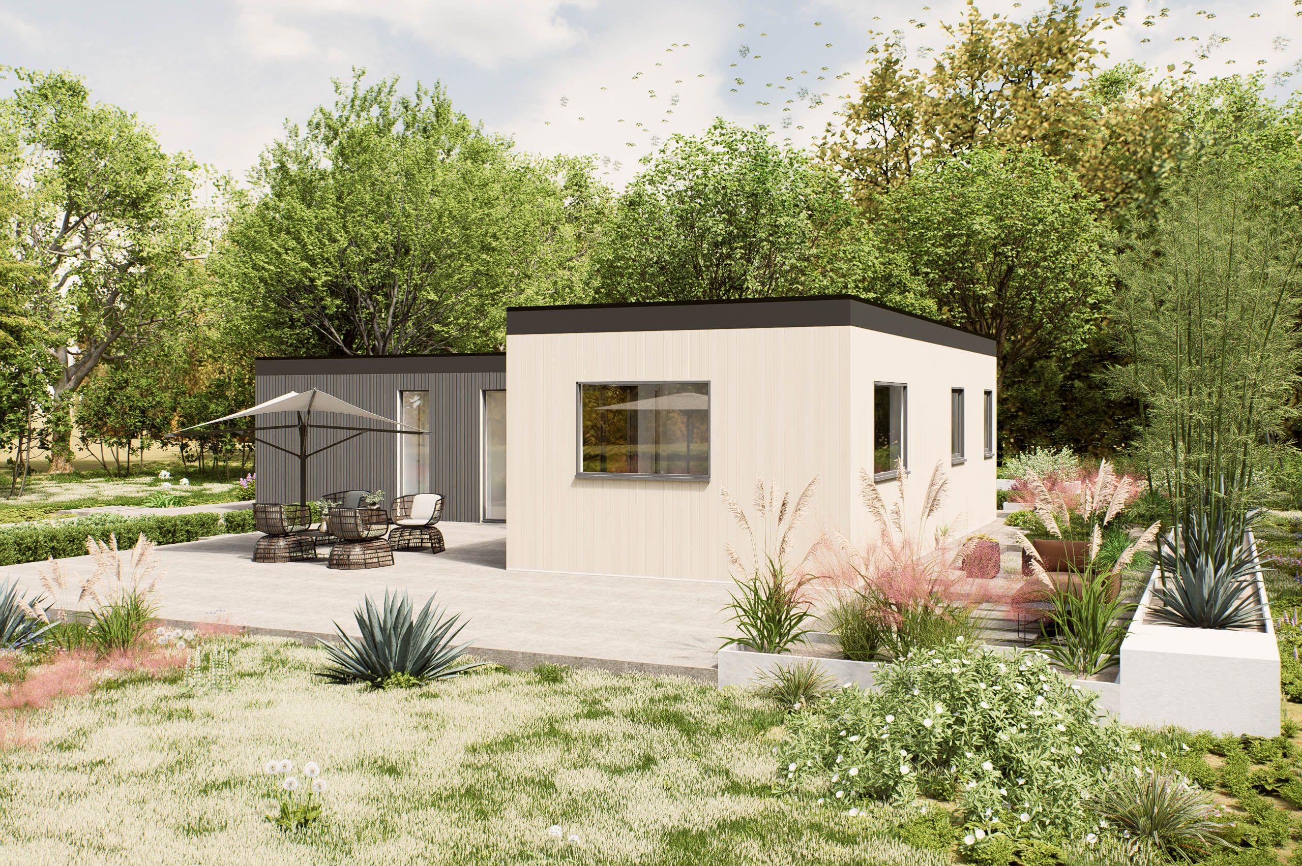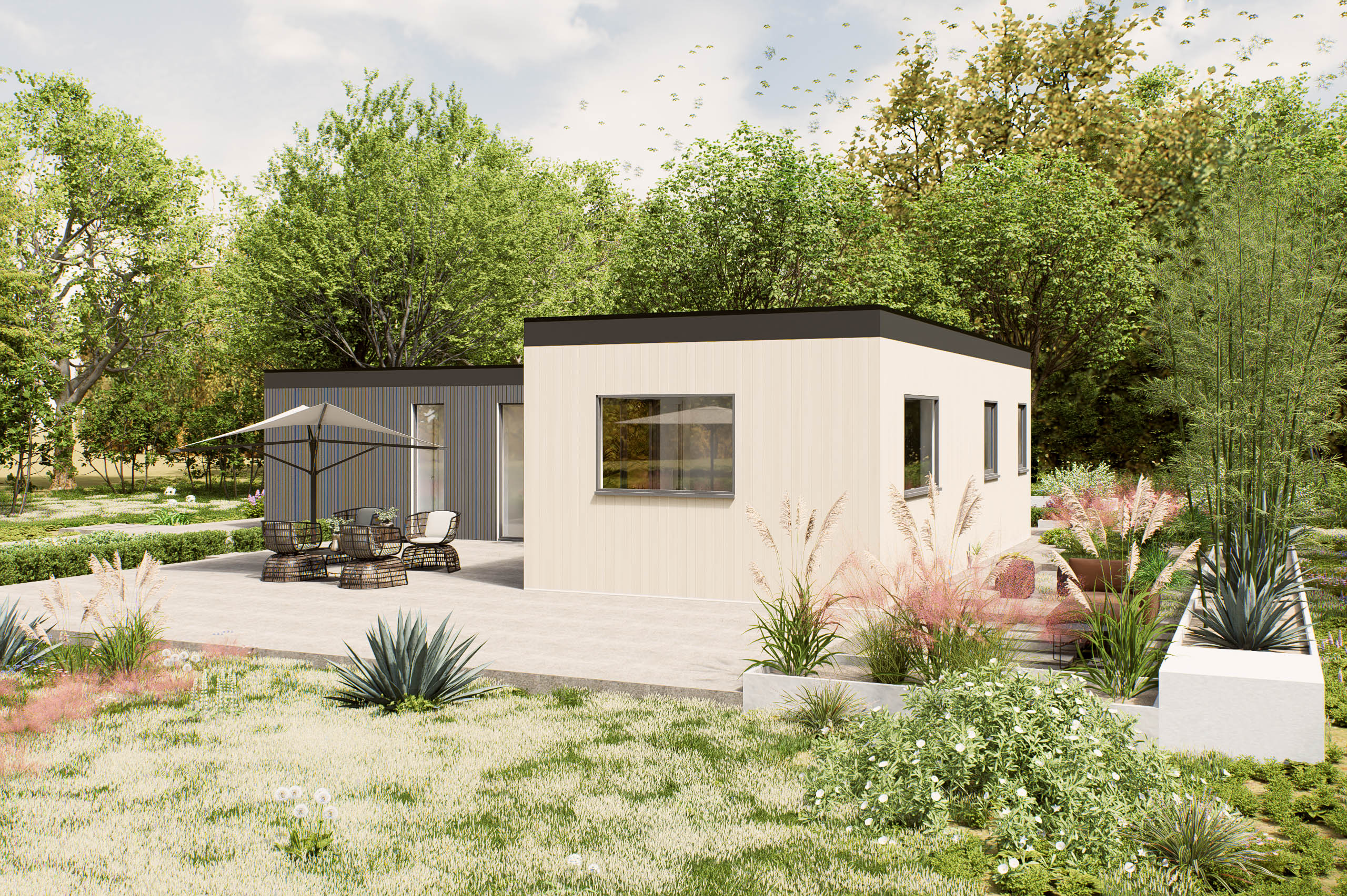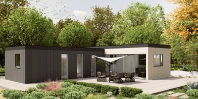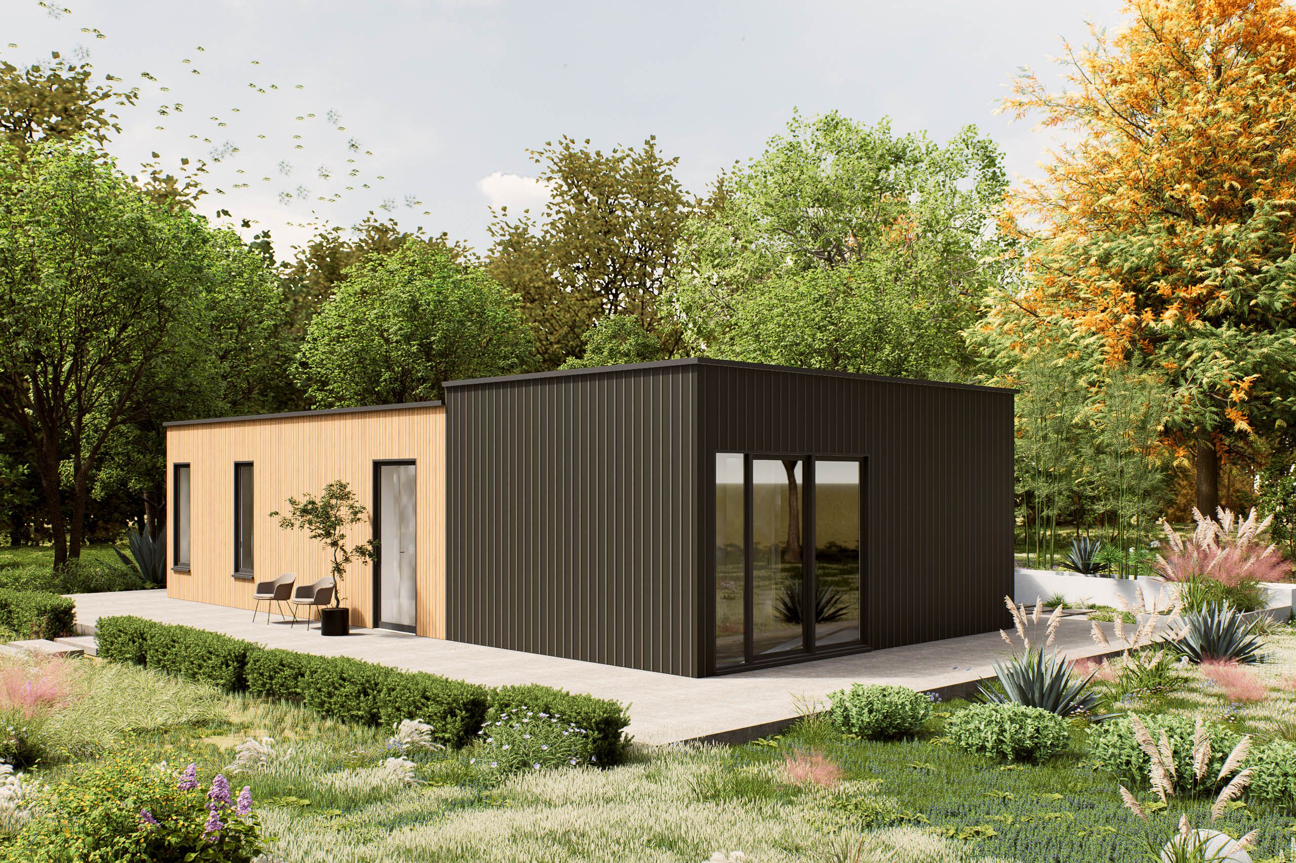 De Carviano is een hoogwaardige prefab woning die perfect is voor één of twee personen, en kan ook dienen als mantelzorgwoning. Met een versprongen dak en een slimme indeling biedt deze woning een optimale lichtinval en comfort. De afmetingen van 15 meter in lengte en 10 meter in breedte zorgen voor praktische leefruimtes die efficiënt zijn ingericht. Het ontwerp straalt moderniteit uit, met een focus op functionaliteit en esthetiek. De plattegrond is bijzonder door de doordachte indeling, die zorgt voor handige verbinding tussen de verschillende ruimtes. Dit maakt de Carviano een ideale keuze voor wie waarde hecht aan zowel kwaliteit als een stijlvolle uitstraling.