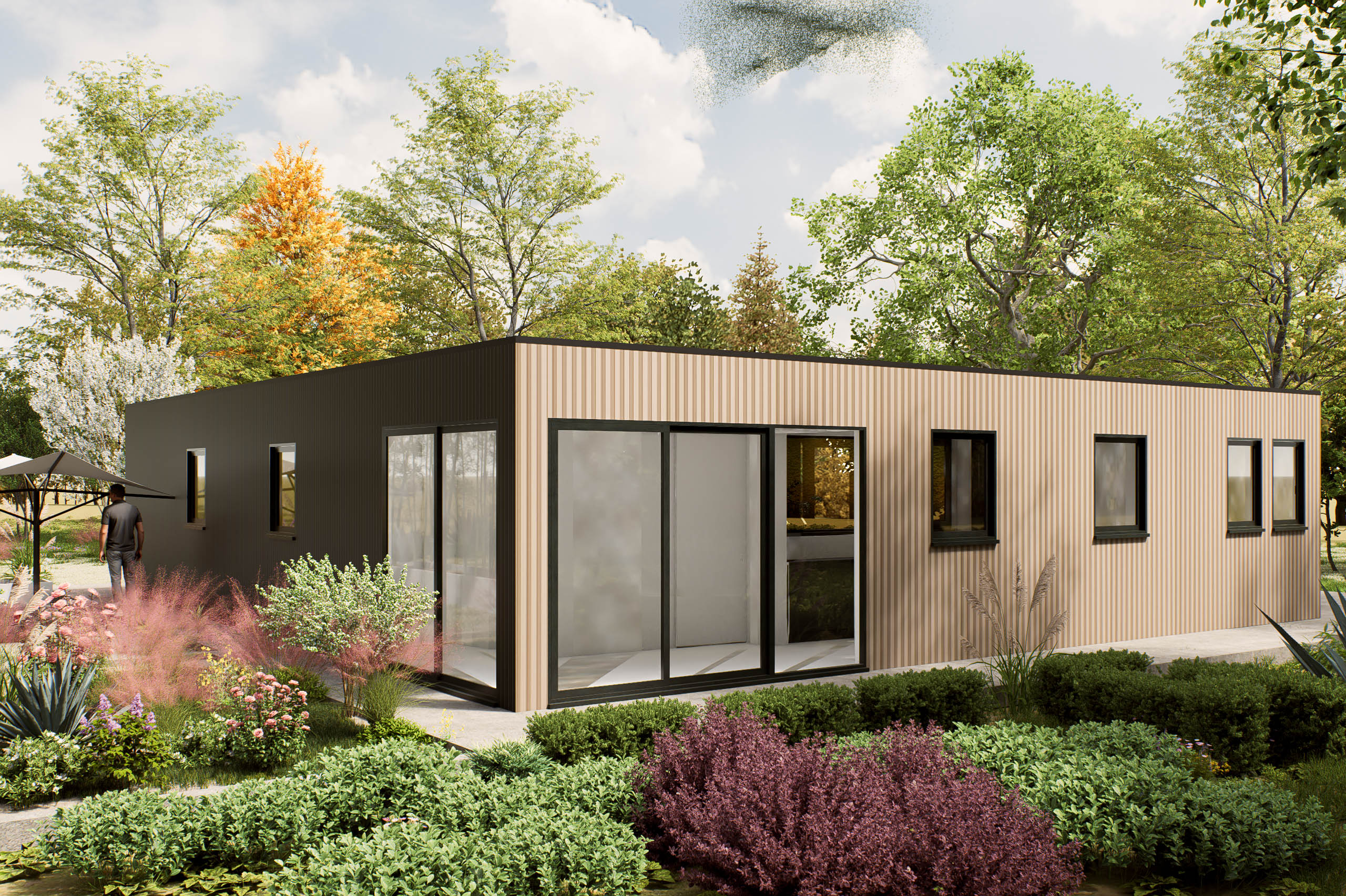 De Lorano is een hoogwaardige prefab woning die perfect is voor één of twee personen, of als mantelzorgwoning kan dienen. Met een plat dak en een slimme indeling van 95 m², biedt deze woning een optimale combinatie van comfort en functionaliteit. De twee slaapkamers zijn ruim en licht, waardoor een aangename sfeer ontstaat. De praktische leefruimtes zijn ontworpen met het oog op efficiënt gebruik, zonder in te boeten op stijl. Het ontwerp van de Lorano straalt moderniteit uit en past naadloos in diverse omgevingen. De plattegrond is bijzonder door de doordachte indeling, die zorgt voor een optimale lichtinval en een gevoel van ruimte. Deze woning is een uitstekende keuze voor wie waarde hecht aan kwaliteit en een doordachte woonervaring.