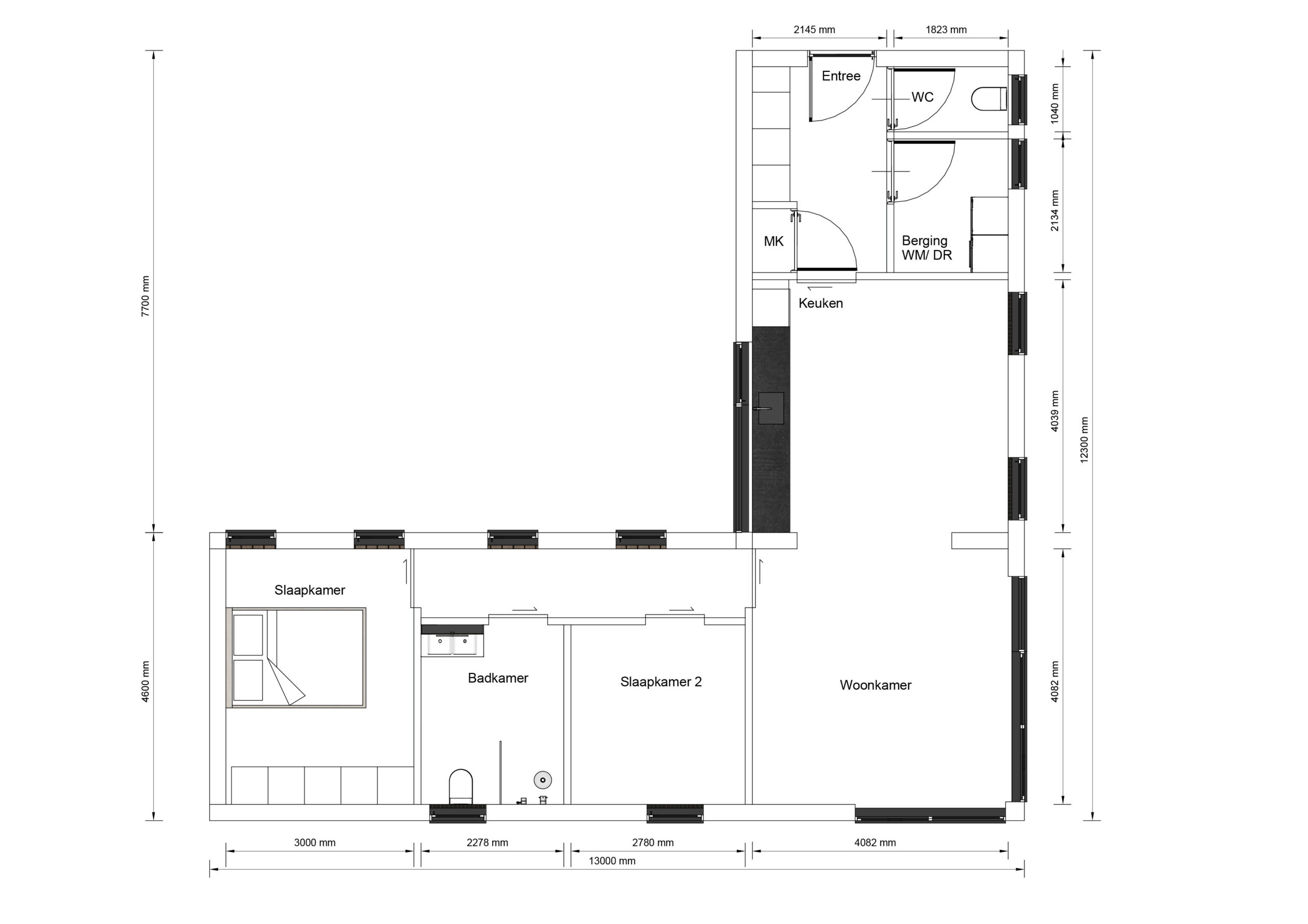 95m2 woonoppervlakte      2 slaapkamer(s)