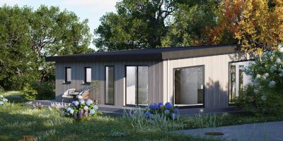De Ovidia met lessenaarsdak oogt modern en licht, zonder dat het model onrustig wordt. De woning is 90 m² groot, met twee slaapkamers, een los toilet en een aparte berging. Met 11,25 bij 8 meter is dit model ruim maar goed inpasbaar. Het schuine dak zorgt binnen voor een aangename hoogte en extra lichtinval. Dit maakt de woning bijzonder geschikt voor wie rust zoekt in een open, lichte ruimte. De Ovidia is praktisch opgezet, en biedt comfort in een moderne vorm.