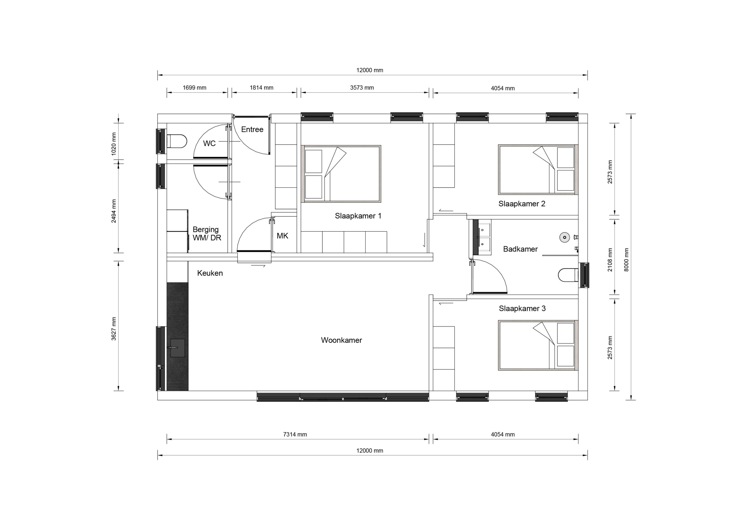 De Palera is een hoogwaardige prefab woning die perfect is voor 1 of 2 personen, en kan ook dienen als mantelzorgwoning. Met een plat dak en een afmeting van 12 bij 8 meter, biedt deze woning een slimme indeling die optimaal gebruik maakt van de beschikbare ruimte. De drie slaapkamers zijn ontworpen met comfort en lichtinval in gedachten, waardoor een aangename leefomgeving ontstaat. De praktische leefruimtes zijn functioneel en stijlvol, met een uitstraling die moderniteit en elegantie uitstraalt. Wat de plattegrond bijzonder maakt, is de doordachte indeling die zorgt voor een gevoel van ruimte en verbondenheid, zonder in te boeten op privacy. De Palera is daarmee een ideale keuze voor wie waarde hecht aan kwaliteit en een doordacht ontwerp.