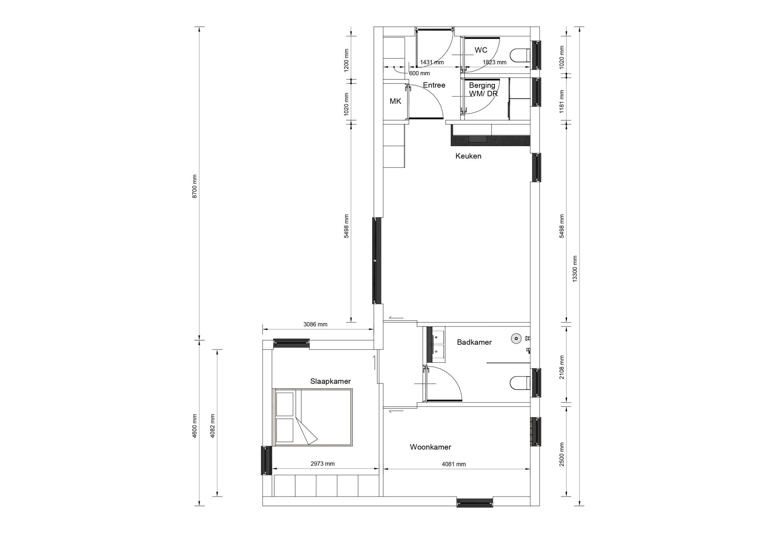 De Torano is een hoogwaardige prefab woning die perfect is voor één of twee personen, of als mantelzorgwoning kan dienen. Met een plat dak en een afmeting van 7,7 bij 13,3 meter, biedt deze woning een slimme indeling die optimaal gebruik maakt van de beschikbare ruimte. De twee slaapkamers zijn ontworpen met comfort en lichtinval in gedachten, waardoor een aangename leefomgeving ontstaat. De praktische leefruimtes zijn stijlvol en functioneel, met een uitstraling die moderniteit en elegantie uitstraalt. Wat de plattegrond bijzonder maakt, is de doordachte indeling die zorgt voor een gevoel van ruimte en vrijheid, ideaal voor een ontspannen levensstijl.