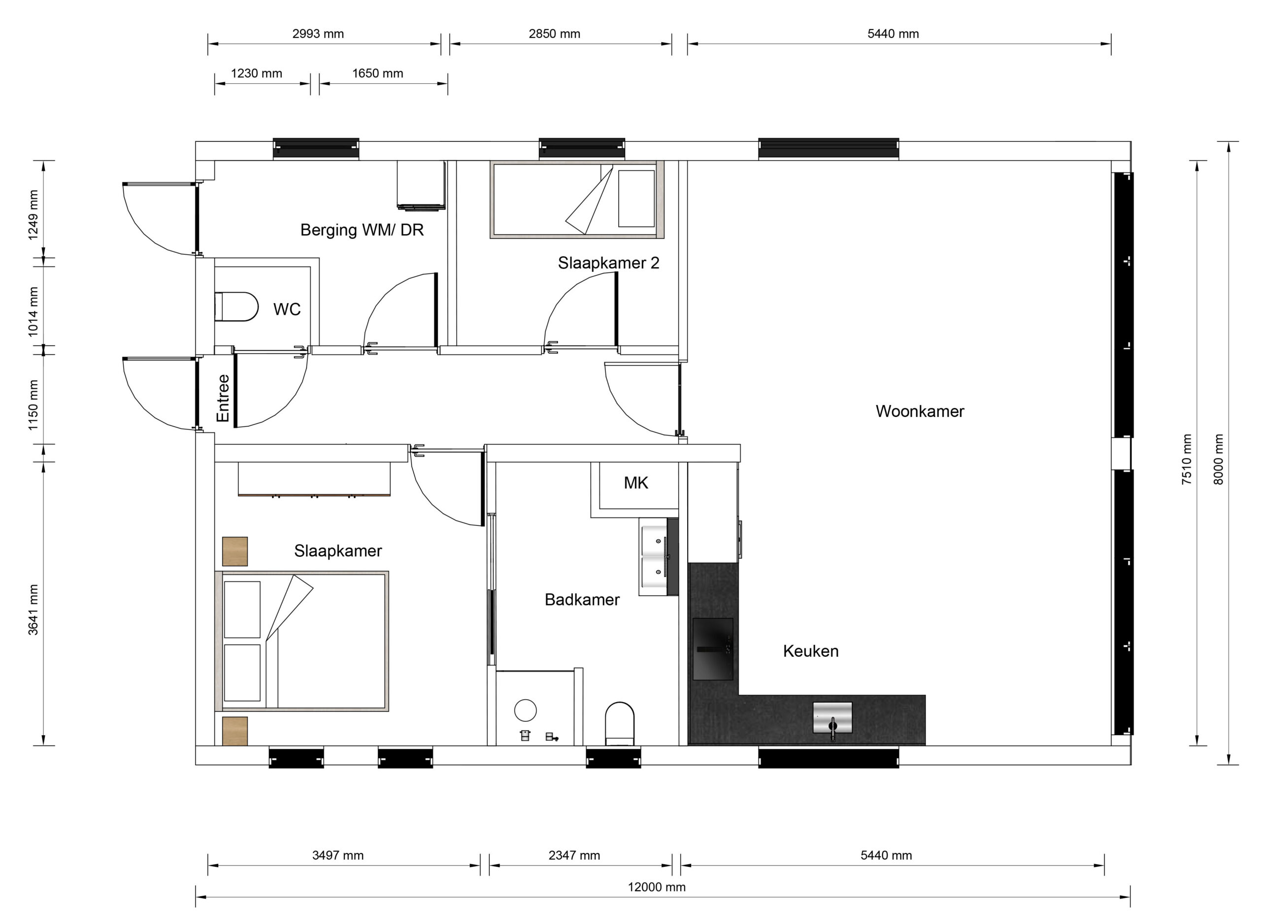 96m2 woonoppervlakte      2 slaapkamer(s)